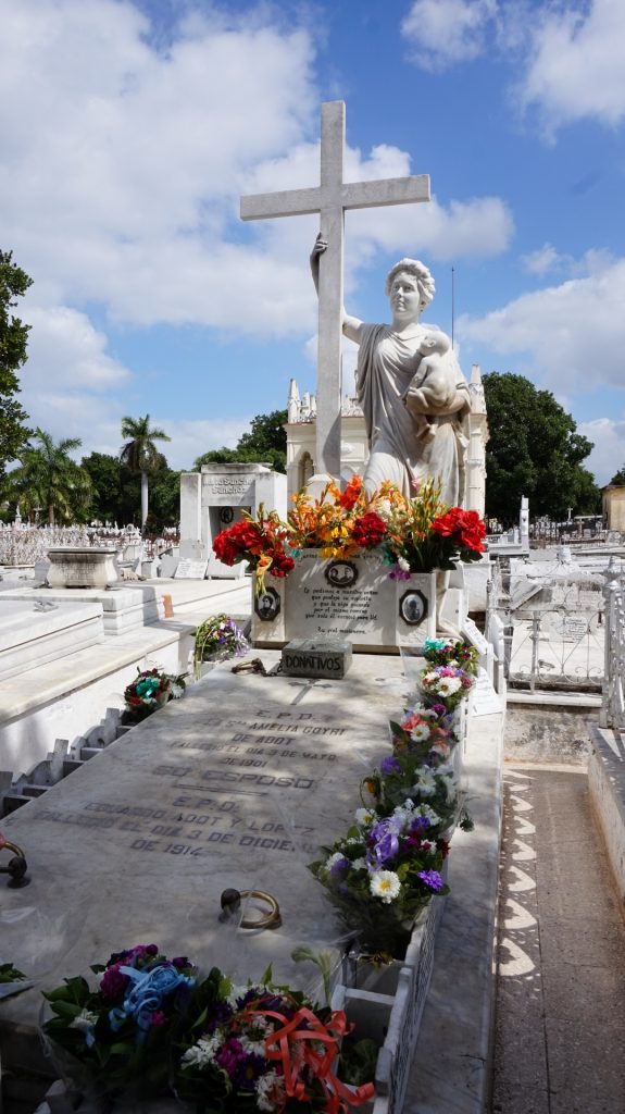 Vedado gezisi için önerilebileceğim yerlerden sonuncusu ise çok garip gelebilir, çünkü önereceğim yer bir mezarlık; Cementerio de Colón. Mimari zenginliği ve heykellerin ihtişami dikkate alındığında dünyanın en önemli dini yapılarından biri olduğu söyleniyor. En çok ziyaretçi akınına uğrayan mezar La Milagrosa (mucize kadın) olarak bilinen Amelia Goire de la Hoz’un mezarı. Mucizeleriyle hasta çocukları iyileştirdiğine, acı çeken annelerin acılarına son verdiğine, çocuğu olmayan kadınlara çare olduğuna inanılıyor. Efsaneye göre Amelia, ailesinin itirazlarına rağmen, Jose Vincent Adot ile evlenir. Kısa sürede hamile olduğunu ögrenir. Fakat doğum sırasında kendisi de, bebeği de ölür. Bebeği annesinin ayaklarının ucuna gömerler. Yıllar sonra mezar açıldığında cesetler bozulmamıştır, bebek ise Amelia’nın sol kolundadır. Işte bu da Amelia’nın mucizesidir. Jose kırk yıl boyunca ziyaret eder mezarı. Oradaki pirinç tokmağı üç kere vurur ve Amelia’yı çağırır, çiçeklerle mezarı süsler ve giderken de sırtını mezara dönmeden, geri geri giderek oradan ayrılır. İşte Amelia’nın mucizelerine inananlar da aynı ritueli gerçekleştirerek mezarını ziyaret ediyorlar.